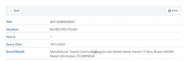 与此同时,IMEI数据库也佐证了“2512BPNDAG”即为小米17 Ultra的国际版本。结合近期流出的真机谍照,可以确认新机将采用后置三摄系统,这与之前传闻的影像配置相吻合。据悉,其影像模组将非常强大,主摄预计采用5000万像素的1英寸大底传感器(豪威OV50X),并搭配一颗2亿像素的潜望式长焦镜头和一颗5000万像素的超广角镜头。